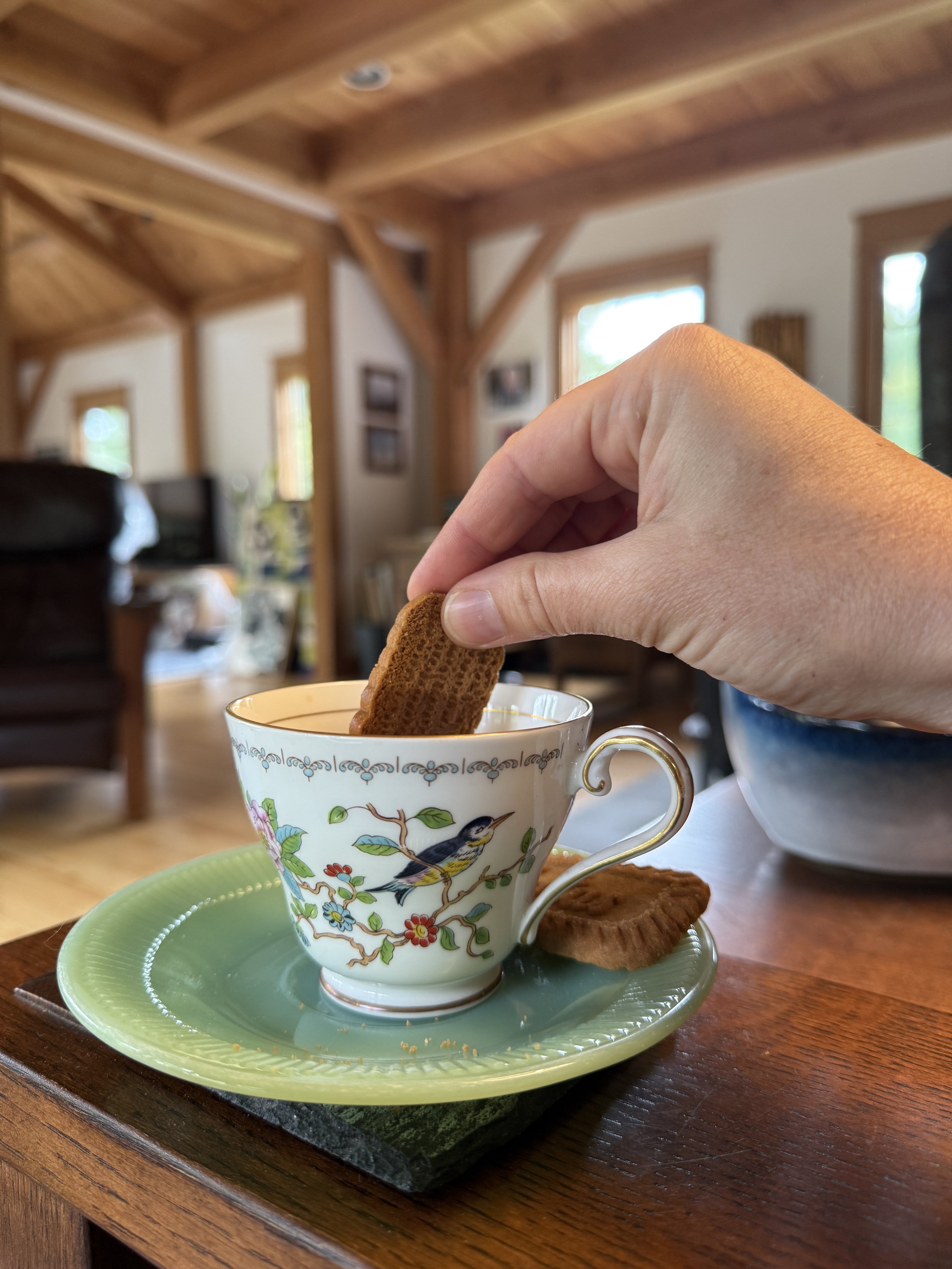 I lifted all the plants off the cedar chest, regretting my choice to move the massive jade by myself. Inside, wrapped in newspaper, were all the china and glass bits that I'd collected, but never used. Somewhere, there had to be a china tea cup and saucer, and I had to unpack most of the chest before I found the cup. No saucer, but I found one of those in the cupboard.