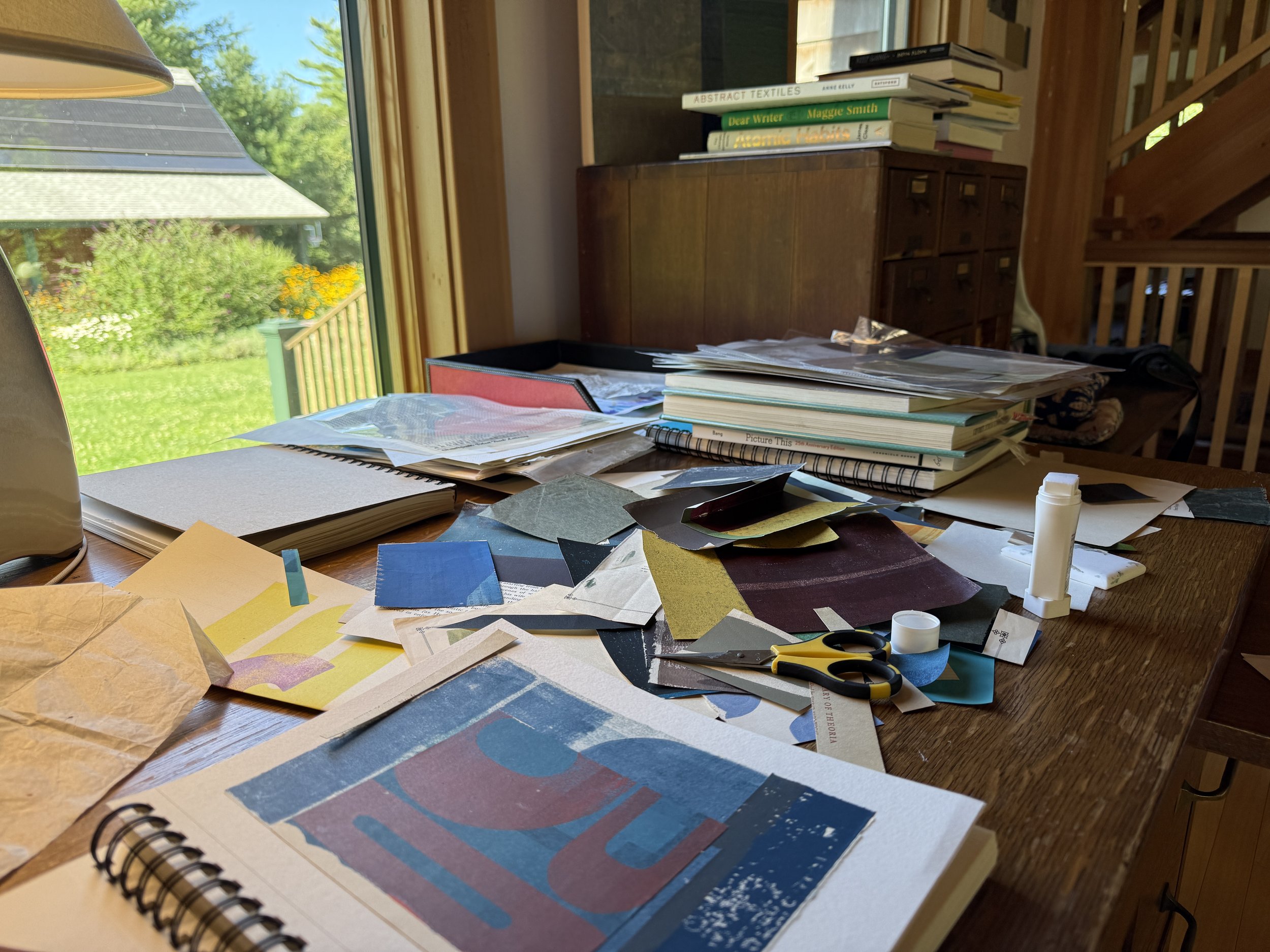 I keep my sketchbook and supplies on my office desk and use it whenever I have few moments to play.