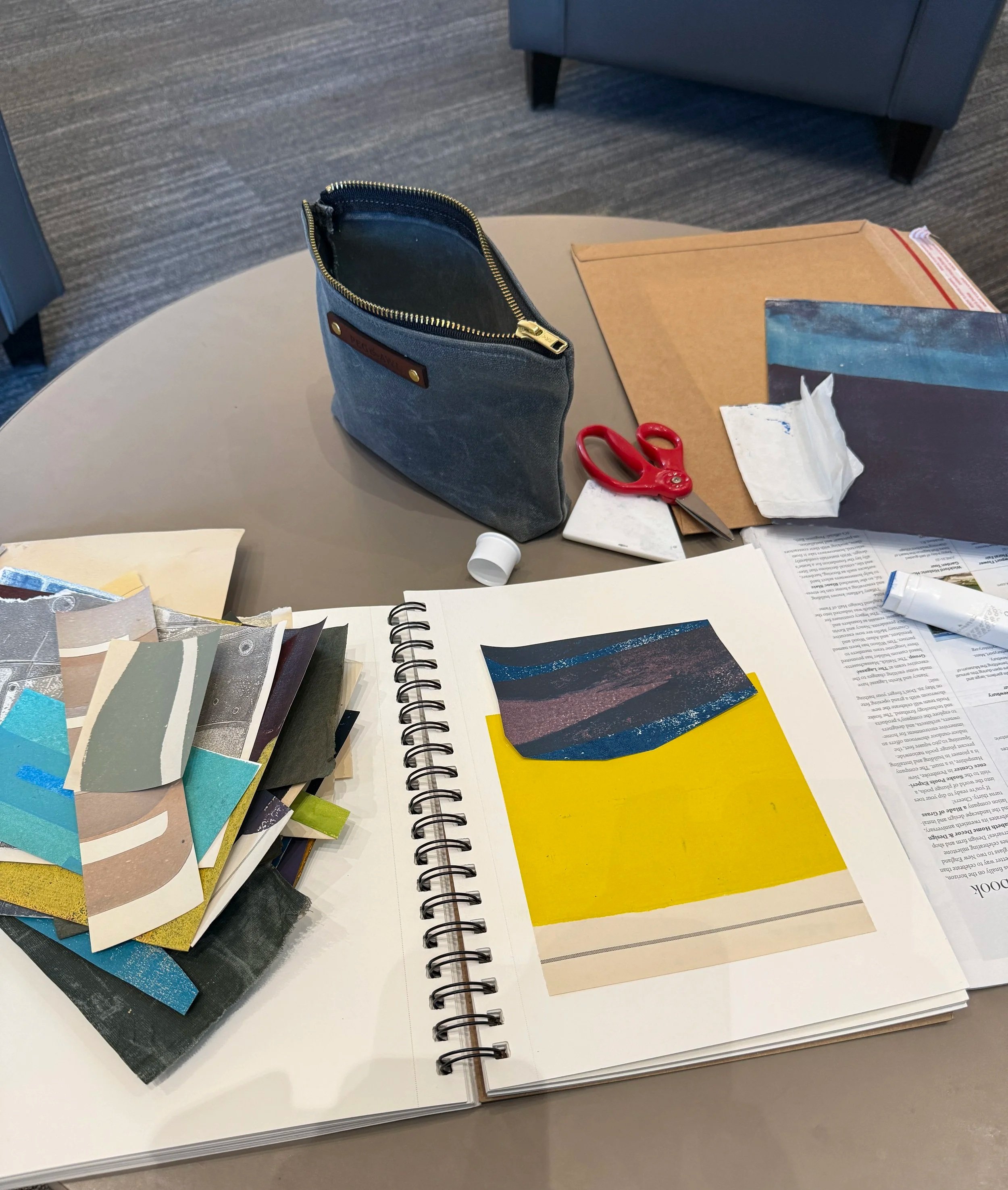 Create a collage with papers found on your trip- bookmarks, tourist brochures, paper placemats